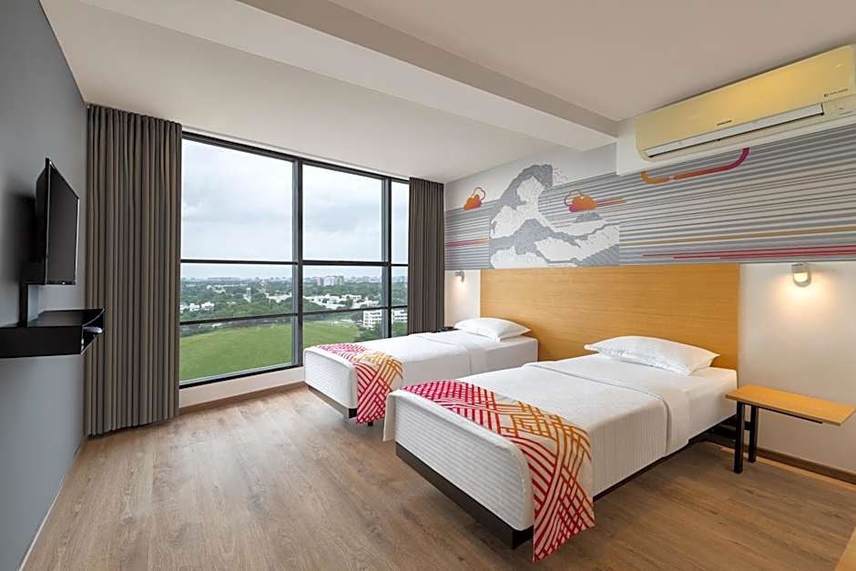 This twin room has air conditioning, a tea and coffee maker, a flat-screen TV and city views. The unit has 2 beds.